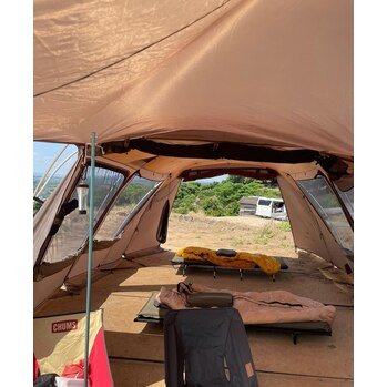 西浦さんのお客様でキャンプ用品を持ってる方がいらっしゃったのではじめて私も一緒にテントを立てました!それが上の写真です↑