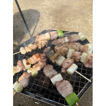私は料理担当で、豚汁と焼き鳥、串に刺して作りました